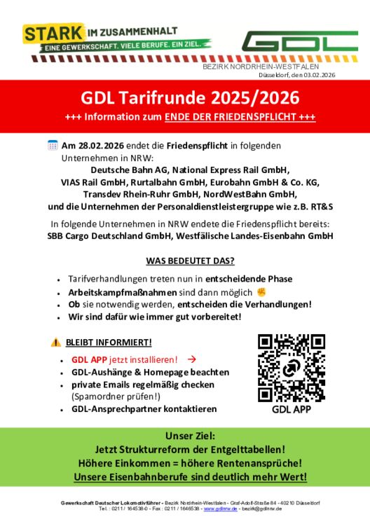 - GDL-Aushänge & Homepage beachten