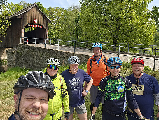 Mit dem Start in Lengefeld-Rauenstein ging es entlang der Flöha durch das malerische Flöhatal. Vorbei an touristischen Hotspots wie der Floßmühle; dem Wandbild am Turbinenhaus Borstendorf - wo Schüler aus dem Landkreis Mittelsachsen und dem Erzgebirgskreis mit Pinsel und Farbe ihre Heimatverbundenheit zum Ausdruck gebracht haben, wobei das Geweih des Hirsches die beiden Flüsse Flöha und Zschopau darstellen. Nachdem die Sitzkunstwerke aus Beton bestaunt wurden, ging es weiter in Richtung Grünhainichen zur Rochhausmühle, um eine erste Stärkung einzunehmen. Danach fuhren wir weiter in Richtung Hohenfichte, mit einem Stop an der alten Holzbrücke für ein kurzes Fotoshooting ;)